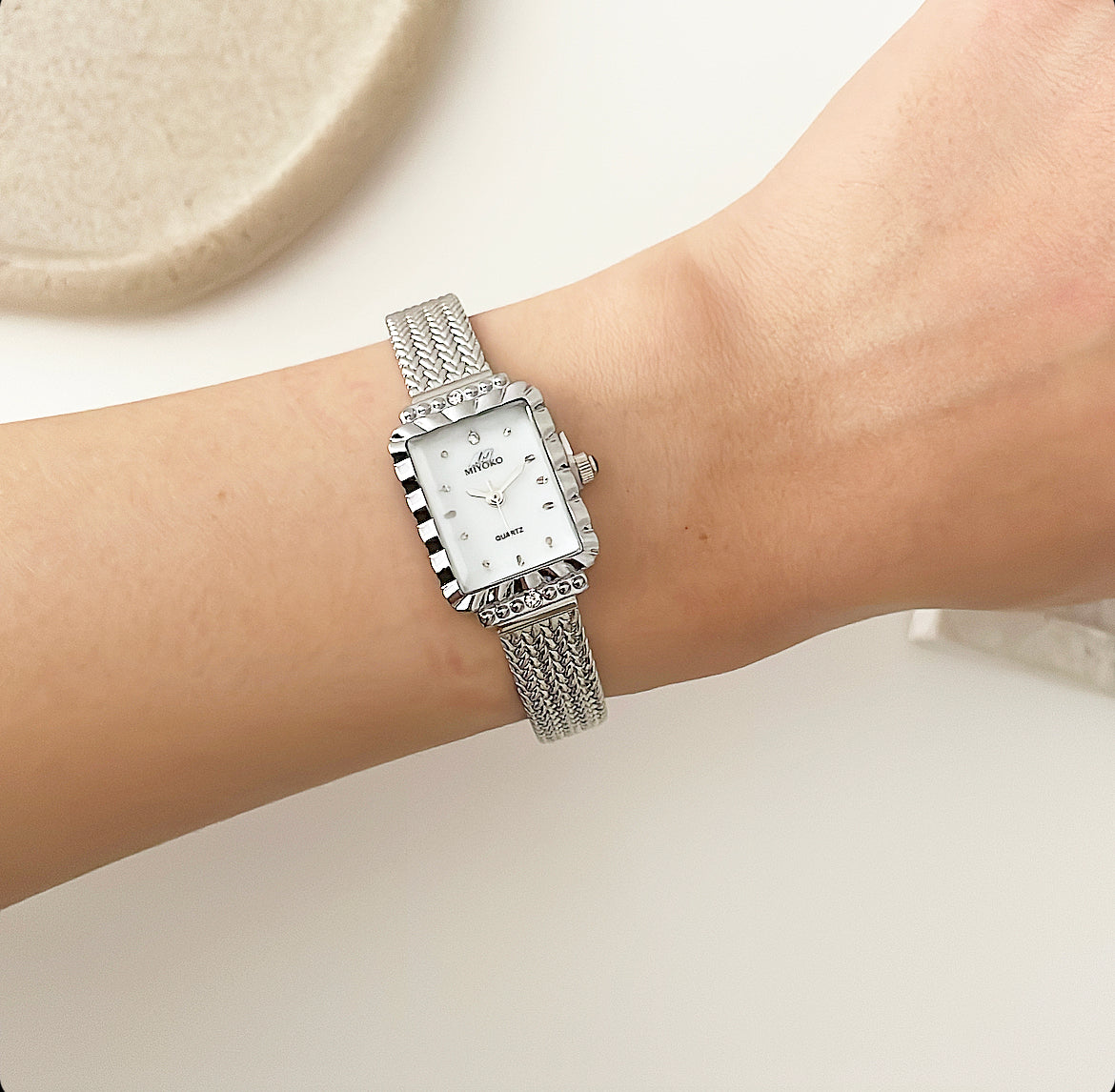 This vintage women's watch features a sleek and stylish silver white design. Crafted with precision and quality, this watch offers both functionality and timeless elegance. Stay punctual and elevate your style with this classic timepiece.